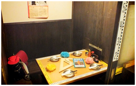 テーブル席の8名様の理科室は、絶対期待は裏切りませんよ。何故なら、みなさんのお越しを骸骨がお部屋で待っているからです(笑)テーブルには、実験器具(試験管、ビーカー、フラスコ)やお部屋の壁には実験方法のポスターまで、小学生の時の理科実験のあの日を想い出せてくれます。