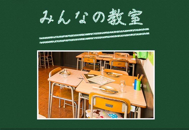 椅子に座って勉強机で給食を食べて、友だちとワイワイしたら、もう小学校時代にタイムスリップした気分になれます!