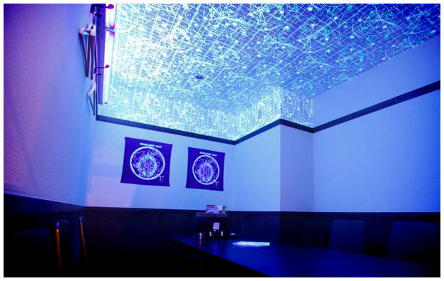 お部屋には、プラネタリウムの照明がお部屋を照らしますので、プラネタリウムに浸る個室感満載のプラネタリウム室です。他にもお部屋には、地球儀や星座の本などもちょっぴりだけど揃えています。美味しく食べて、飲んでプラネタリウムを見ながら宇宙の世界へ思いを馳せてみませんか♪