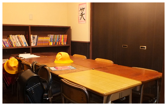 店内には、黒板にランドセル、校長室、職員室、音楽室、保険室とあの懐かしい小学校そのものです♪全席個室2名様~50名様まで!どの教室になるかは来校してからのお楽しみ♪椅子に座って勉強机で給食を食べて、友だちとワイワイしたら、もう小学校時代にタイムスリップした気分になれます!